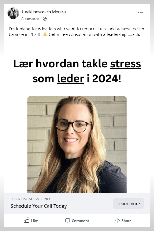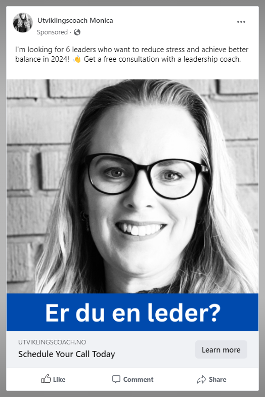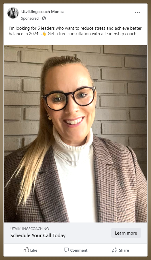 Even though Monica wasn't 100% sure about her skills to help leaders yet, we agreed to commit to that. We started with a small ad budget of 600 euros the first month, which resulted in 14 leads and generated revenue of 20,000 euros.